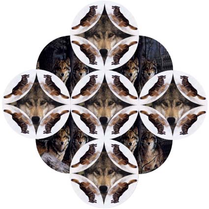 I created this tesselation from a circles cut from a few different wolf pictures I found. I really liked the shape that was created when I put these together.